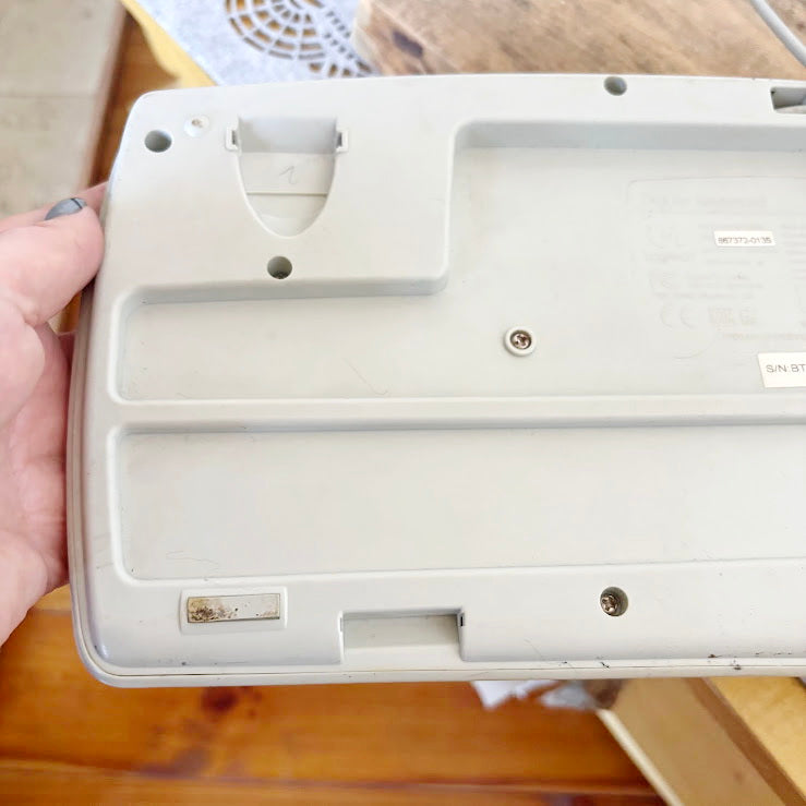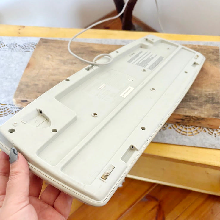 The keyboard has developed a natural yellowed patina from age, which is typical for plastic electronics from this period.