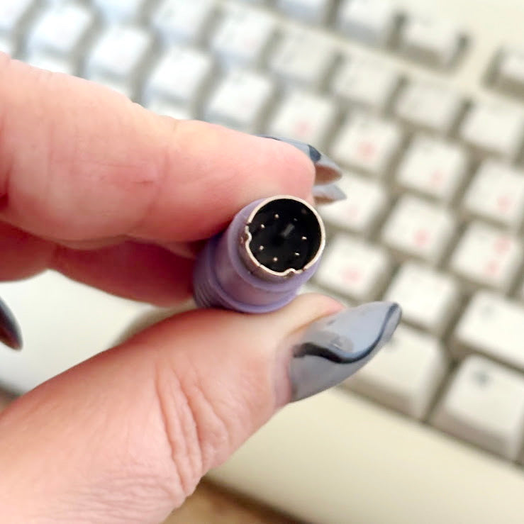 The keyboard features a PS/2 connector, typical for computers of that era. Please note that a PS/2 to USB adapter is required for use with most modern devices.