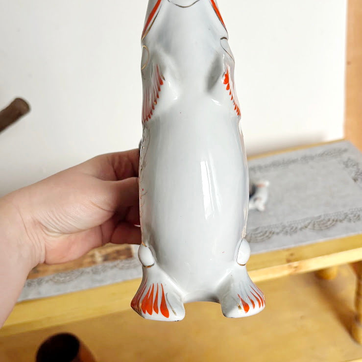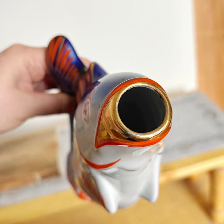 Vintage Soviet “Carp Family” Porcelain Decanter Set, Blue Fish Shaped Pitcher with 4 Shot Cups, USSR Folk Art Collectible