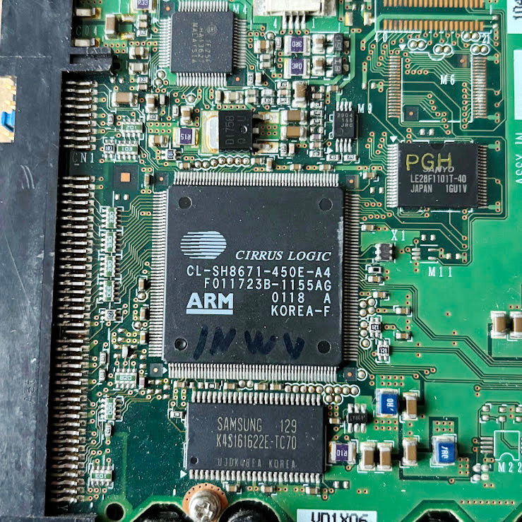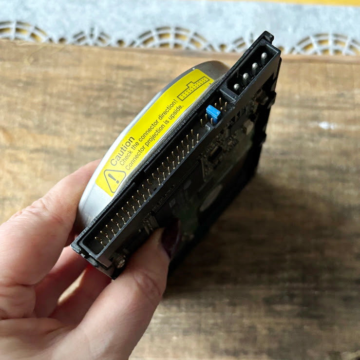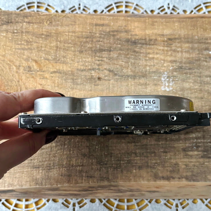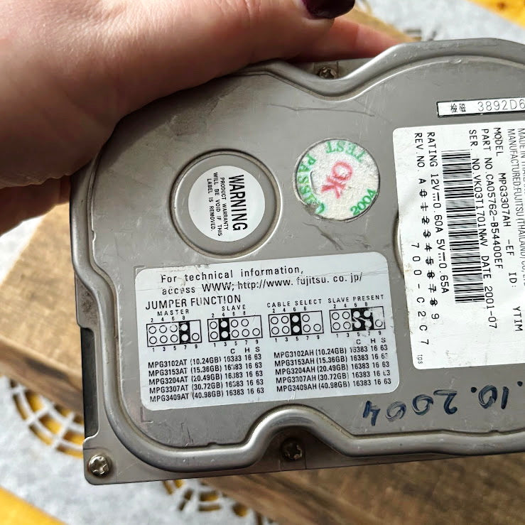 Vintage Fujitsu internal hard disk drive, model MPG3307AH, manufactured in July 2001.
