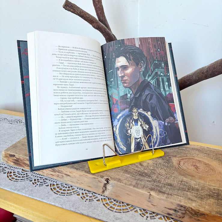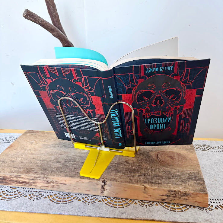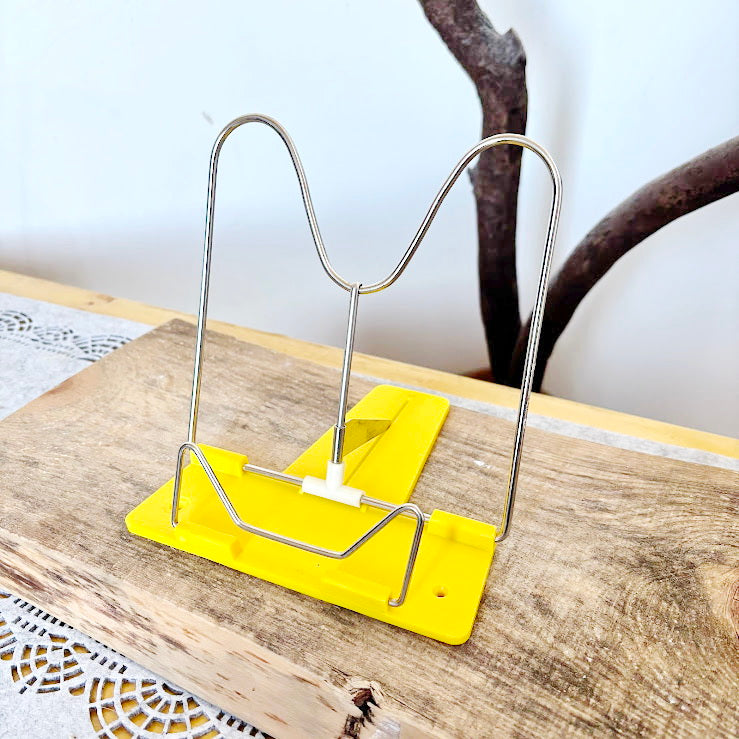 Made from metal wire and durable plastic, the stand securely holds books, magazines, or cookbooks while keeping your hands free. Its cheerful yellow color and minimalist shape make it both practical and decorative.